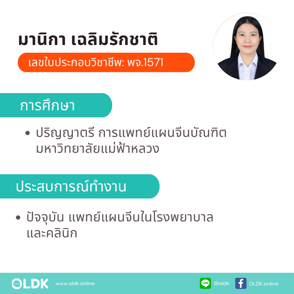 บริการแพทย์แผนจีนที่บ้าน โดย พจ.มานิกา เฉลิมรักชาติ (เลขใบประกอบโรคศิลปะ : พจ.1571)