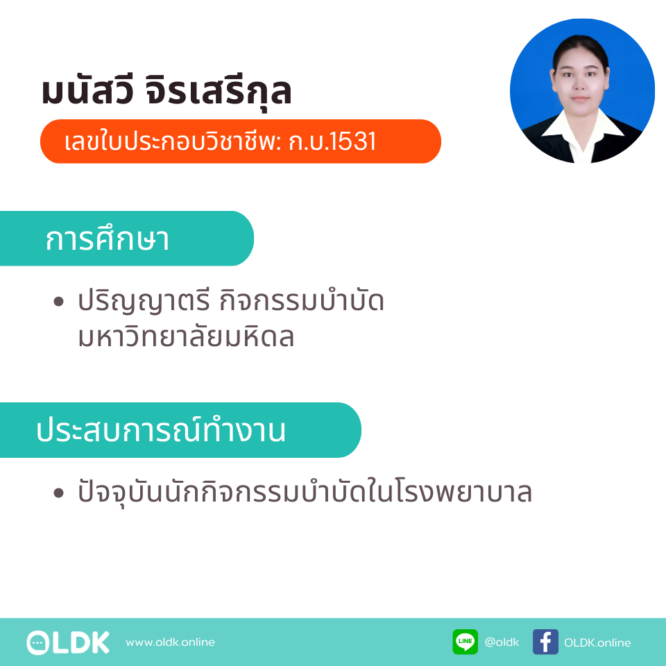 ข้อมูลเพิ่มเติม: ทำกิจกรรมบำบัดที่บ้าน โดย ก.บ.มนัสวี จิรเสรีกุล