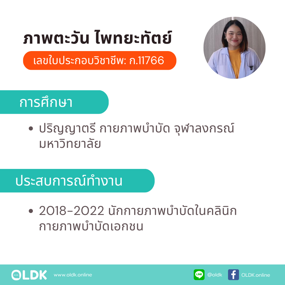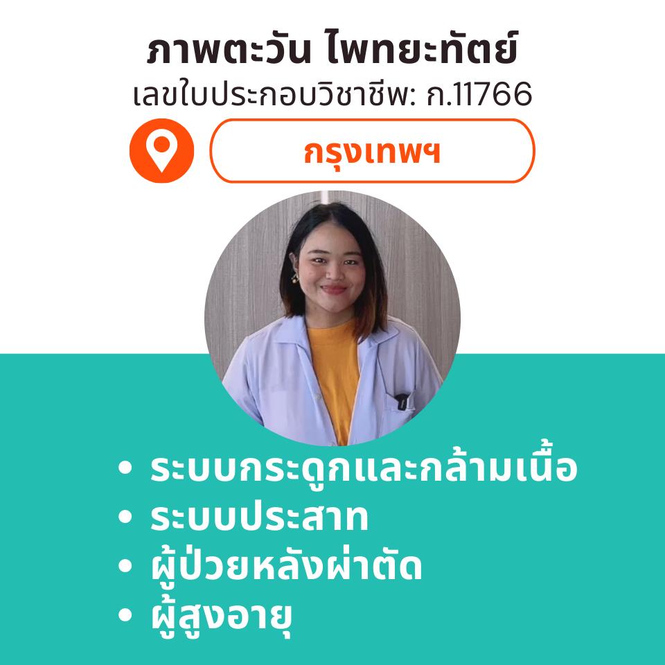 บริการกายภาพบำบัดที่บ้าน โดย กภ. ภาพตะวัน ไพทยะทัตย์ (เลขใบประกอบวิชาชีพ: ก.11766)
