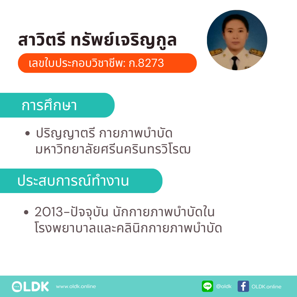 ข้อมูลเพิ่มเติม: กายภาพที่บ้าน โดย กภ.สาวิตรี ทรัพย์เจริญกูล