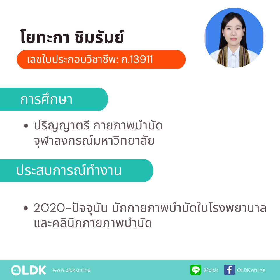บริการกายภาพบำบัดที่บ้าน โดย กภ.โยทะกา ชิมรัมย์ (เลขใบประกอบวิชาชีพ : ก.13911)