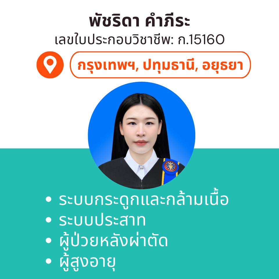 บริการกายภาพบำบัดที่บ้าน โดย กภ.พัชริดา คำภีระ (เลขใบประกอบวิชาชีพ : ก.15160)