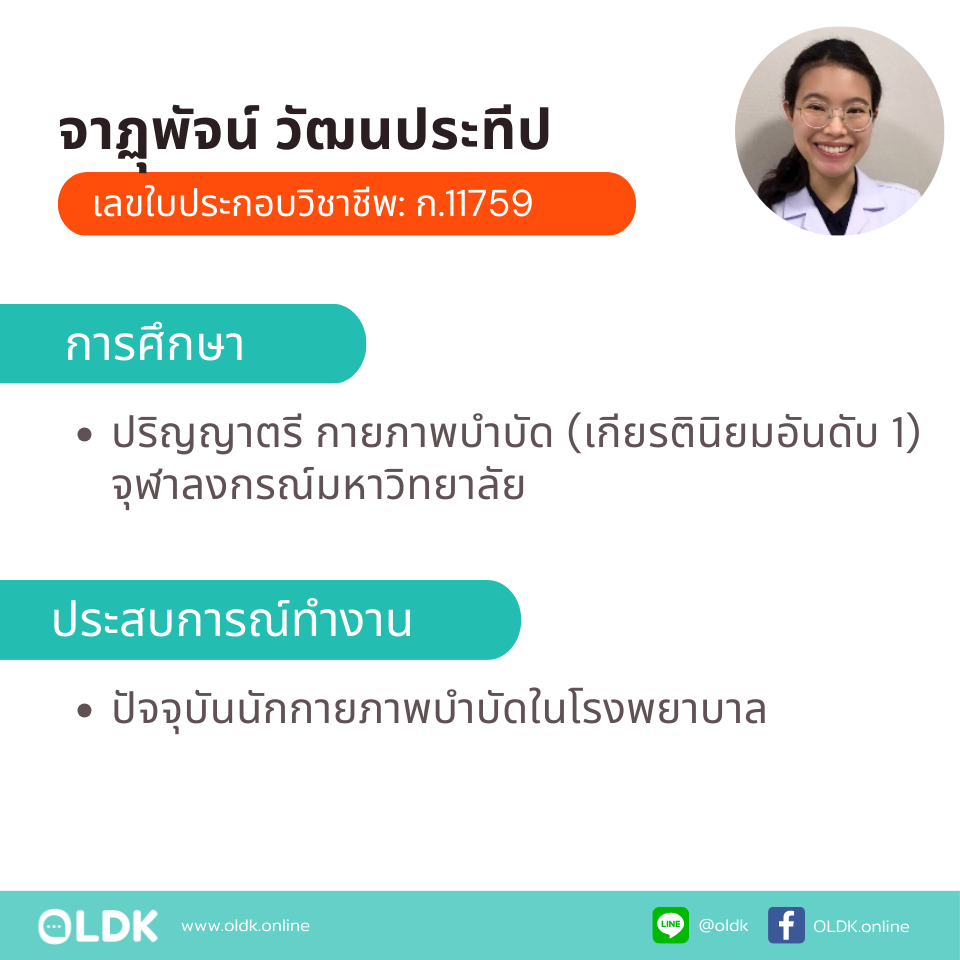 ข้อมูลเพิ่มเติม: กายภาพที่บ้าน โดย กภ.จาฏุพัจน์ วัฒนประทีป