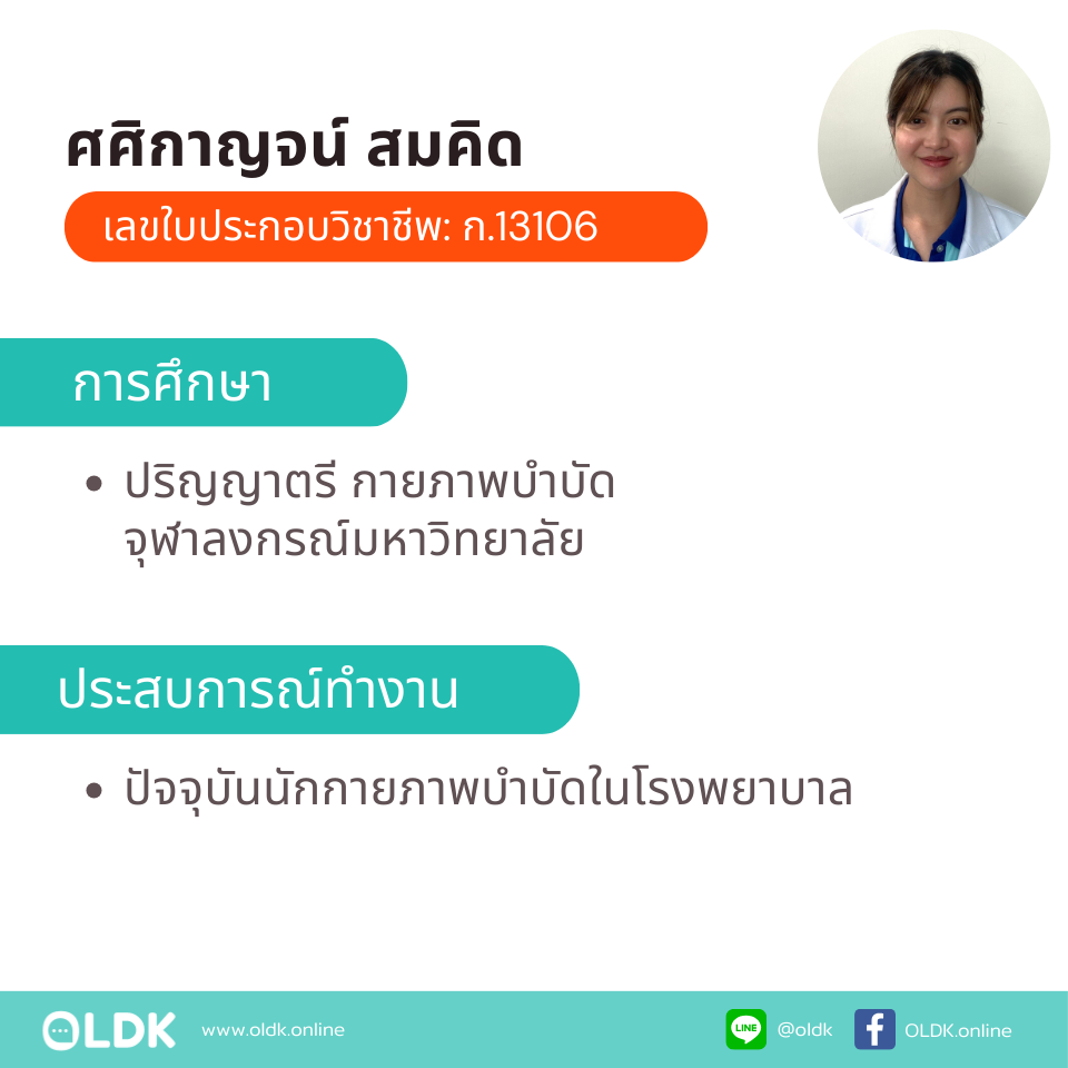 บริการกายภาพบำบัดที่บ้าน โดย กภ. ศศิกาญจน์ สมคิด (เลขใบประกอบวิชาชีพ: ก.13106)