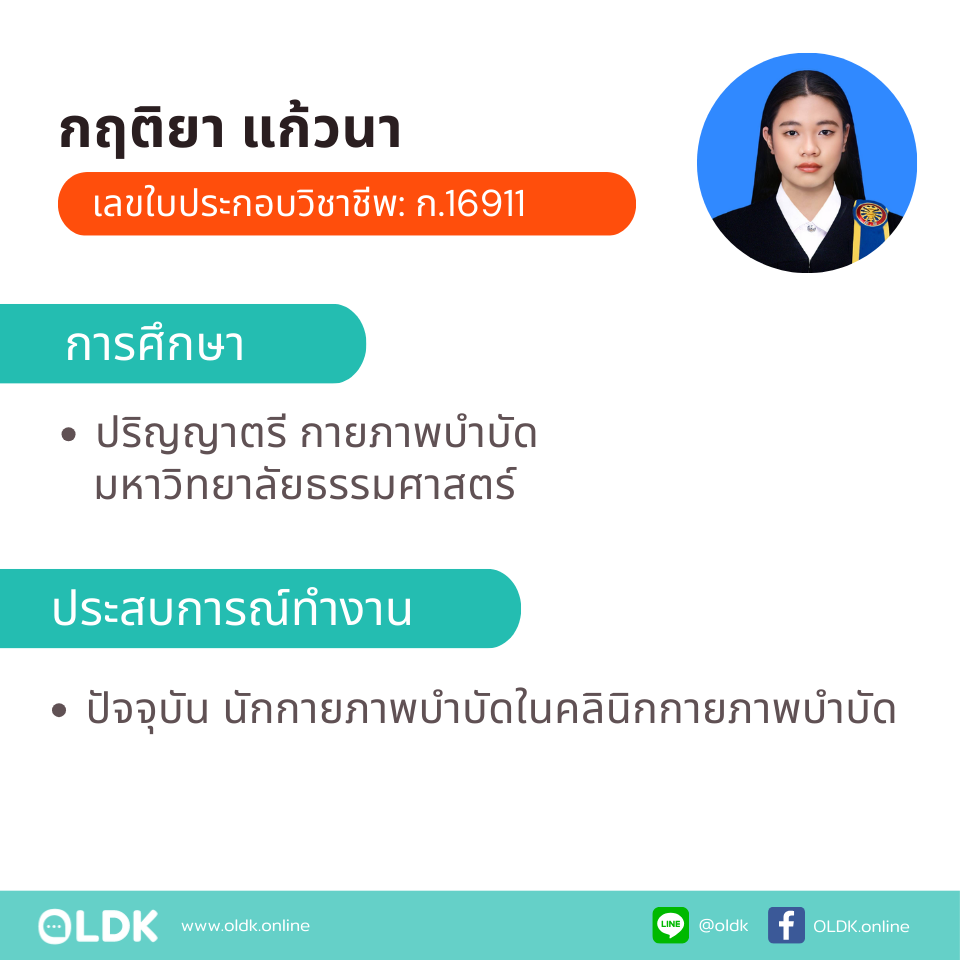 บริการกายภาพบำบัดที่บ้าน โดย กภ.กฤติยา แก้วนา (เลขใบประกอบวิชาชีพ: ก. 16911)