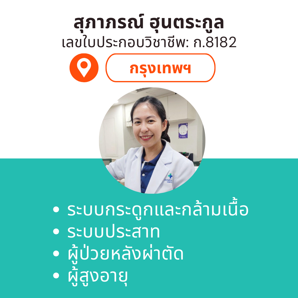 บริการกายภาพบำบัดที่บ้าน โดย กภ.สุภาภรณ์ ฮุนตระกูล (เลขใบประกอบวิชาชีพ: ก.8182)